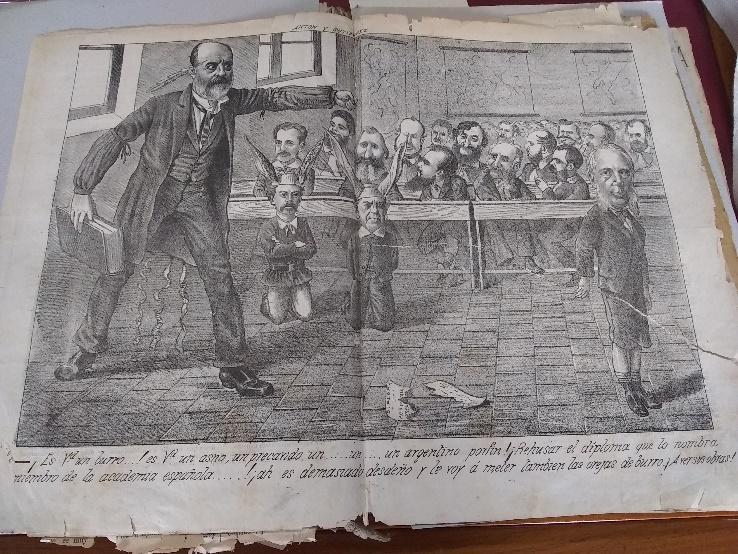 -Es Ud. un burro…! Es Ud. un asno, un precavido, un… un… un argentino por fin! ¡Rehusar el diploma que lo nombra miembro de la academia española….! ¡ah es demasiado desdeño y le voy a meter también las orejas de burro! ¡A ver sus obras!