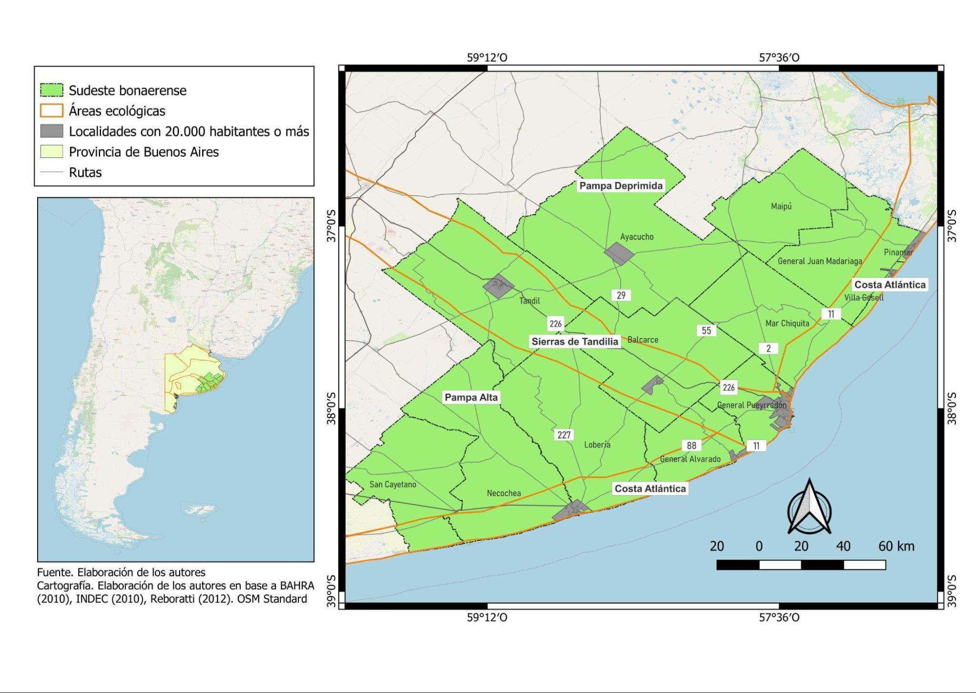 La diversidad de la Región Pampeana, Argentina, permite identificar subregiones, por ejemplo, el sudeste de la provincia de Buenos Aires. Según los criterios adoptados en Ares, Mikkelsen y Lucero (2020), esta comprende los partidos visibles en la Figura Nº 1: Ayacucho, Balcarce, General Alvarado, General Juan Madariaga, General Pueyrredon, Lobería, Maipú, Mar Chiquita, Necochea, Pinamar, San Cayetano, Tandil y Villa Gesell. De acuerdo con los datos del Censo Nacional de Población, Hogares y Viviendas 2022, esta región presenta 1.202.458 habitantes.