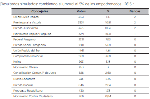 Los intentos de modificar o eliminar el método de preferencias para los concejales de la Ciudad de Ushuaia a fin de garantizar la paridad de géneros en la representación produjeron un debate que debe atenderse. Se postuló que, suprimiendo ese método o incluso modificándolo para que respete la igualdad de géneros en el actual contexto de régimen electoral se garantizará la paridad de género en ese órgano legislativo municipal. Un estudio de la evolución de su sistema electoral nos dirá si ello resulta factible o si por el contrario otras variables -especialmente la magnitud del distrito o la modificación del umbral electoral- deben ser tenidas en cuenta para aspirar al cumplimiento de ese objetivo.Descargas