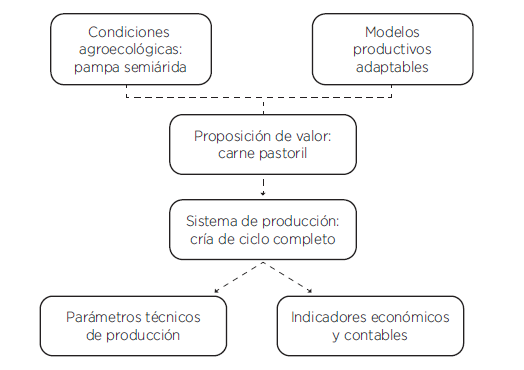 Uno de los objetivos de este trabajo es proponer un modelo cuantitativo de análisis de gestión destinado a evaluar la viabilidad de emprendimientos dedicados a la producción de ganado bovino localizados en la pampa semiárida. Para ello, se tienen en consideración estándares y parámetros técnicos, productivos, económicos y contables. Cabe resaltar que, el modelo que se desarrollará en este trabajo es aplicable a un planteo productivo particular o ciclo operativo o de gestión relativo a la producción de carne bovina de ciclo completo en la pampa semiárida y en condiciones de secano. Esto es, considerado el proceso productivo en su integridad, desde el nacimiento del ternero hasta su terminación con alimentación pastoril para su posterior comercialización.