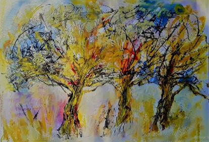 Tres caldenes, técnica mixta. Adriana Chavarri