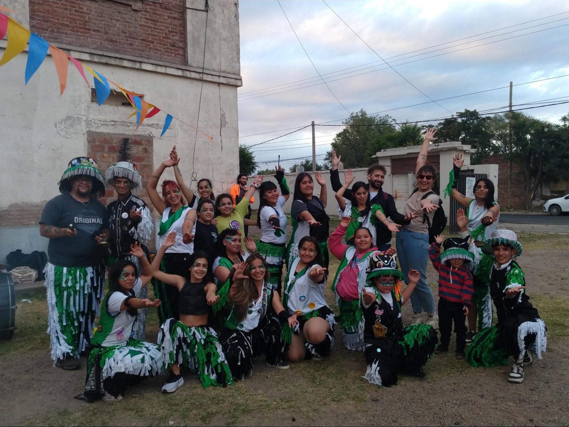 Con el comienzo del año lectivo del 2024 organizamos las primeras visitas domingueras a la murga desde la facultad con el grupo de estudiantes. Pero, va a ser para el segundo cuatrimestre que la dinámica de trabajo comunitario se profundiza con la llegada de Valentina (parte escribiente de este artículo) y Joaquín (estudiante de Lenguas Extranjeras). La intención de llevar adelante la práctica comunitaria en/con este espacio desde el inicio fue distinguible. Dejarnos llevar por la música, el arte, la expresión corporal era una idea (y un hacer) que nos descolocaba, nos movía fuera de nuestra zona conocida y cómoda. A su vez, sospechábamos de las posibilidades para tejer otros modos de pensar e intervenir en nuestro entorno, conectar con nuestras formaciones y pedagogías diversas, crear y poner en acción ideas compartidas.