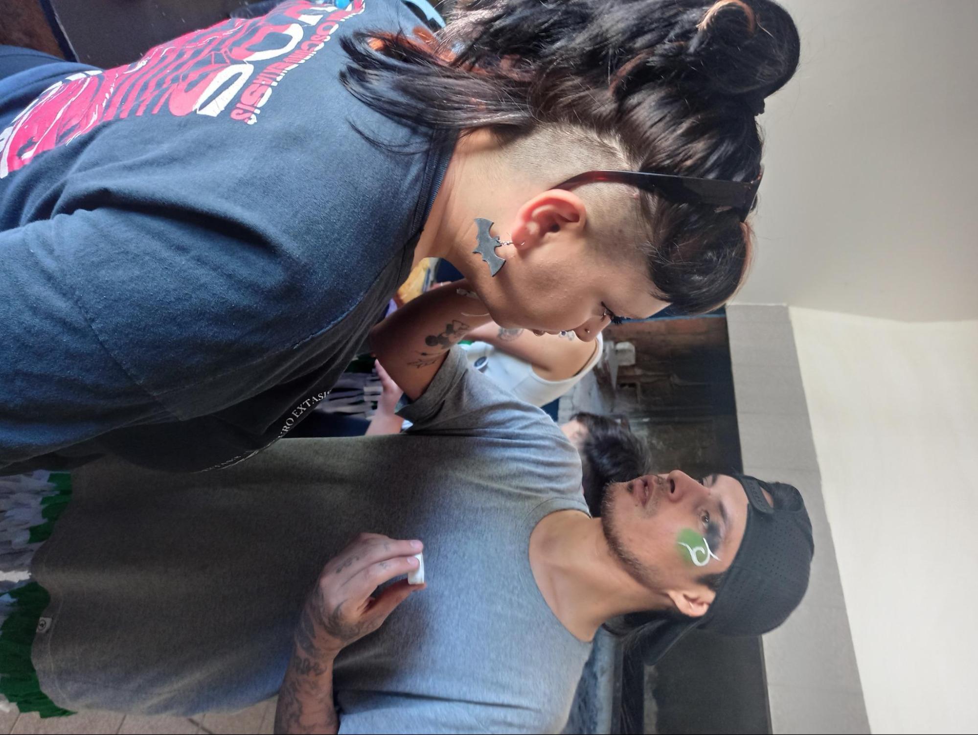 Ensayo de domingo. Kevin maquillando. Registro fotográfico propio durante 2024.