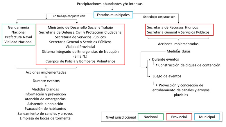 Los espacios verdes públicos (EVP) sobre las costas del río Limay en el Área Metropolitana de Neuquén (AMN) pueden representar herramientas para la gestión del agua. Para el diseño de tales instrumentos es importante conocer la dinámica local de amenazas hidormeteorológicas. El objetivo de este trabajo es analizar, desde una perspectiva histórica con base en la prensa escrita digital, la ocurrencia de eventos relacionados a amenazas hidrometeorológicas (eventos de exceso hídrico debidos a crecidas fluviales y precipitaciones intensas y/o abundantes) en el AMN y en particular, en torno a los EVP ubicados sobre la costa del río Limay para el período 1999-2020. Se relevaron 131 artículos periodísticos y la información recolectada se validó mediante bases de datos hidrometeorológicas. La metodología permitió clasificar los eventos según origen y naturaleza, así como caracterizarlos en función de sus particularidades físicas; afectaciones resultantes en áreas urbana, periurbana y rural; actores involucrados de distintas jurisdicciones y acciones efectuadas. Medidas blandas prevalecieron previo y durante eventos y medidas duras posterior a ellos. Puntualmente, las consecuencias en EVP resultan en impedimentos para sus usuarios. Los registros históricos brindan información inicial, útil e integral para el análisis de la incidencia de procesos hídricos en las ciudades.Descargas