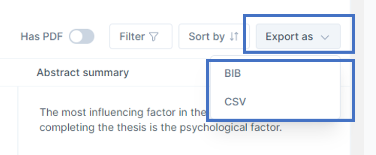 Por último, como ilustra la imagen 9, el sistema también permite exportar los resultados en dos formatos: como archivo BIB o CSV.