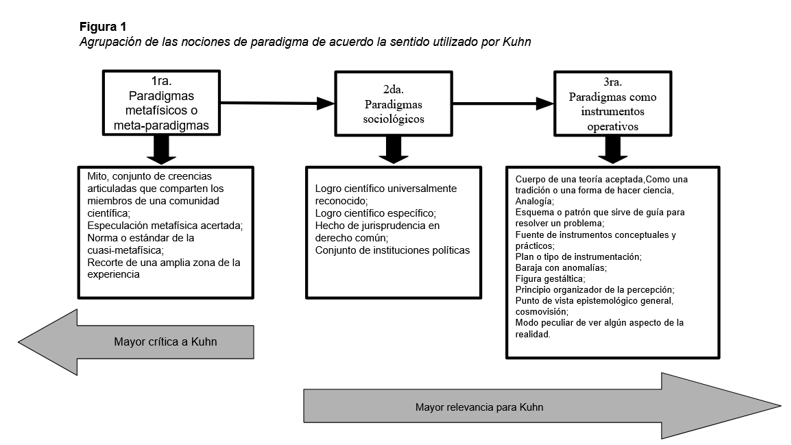 Agrupación de las nociones de paradigma de acuerdo al sentido utilizado por Kuhn