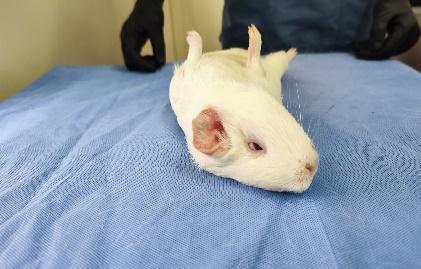 Fig 2. Reflejo de enderezamiento (righting reflex) negativo en cobayos (Cavia porcellus) tras la administración de medetomidina (100 µg/kg) en el punto de acupuntura GV20.