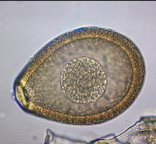 Figura 1: Ooquiste de Eimeria macusaniensis no esporulado, aumento a 100X