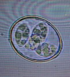 Figura 2: Ooquiste de Eimeria lamae esporulado (aumento 100X)