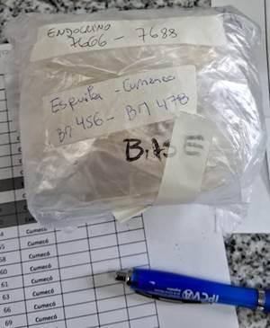 La imagen muestra una bolsa transparente identificada con datos del animal y la fecha donde se observa la lana previamente lavada almacenada para su procesamiento en laboratorio (Imágenes propias).